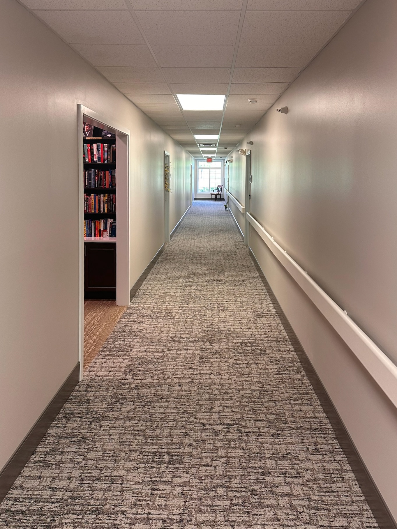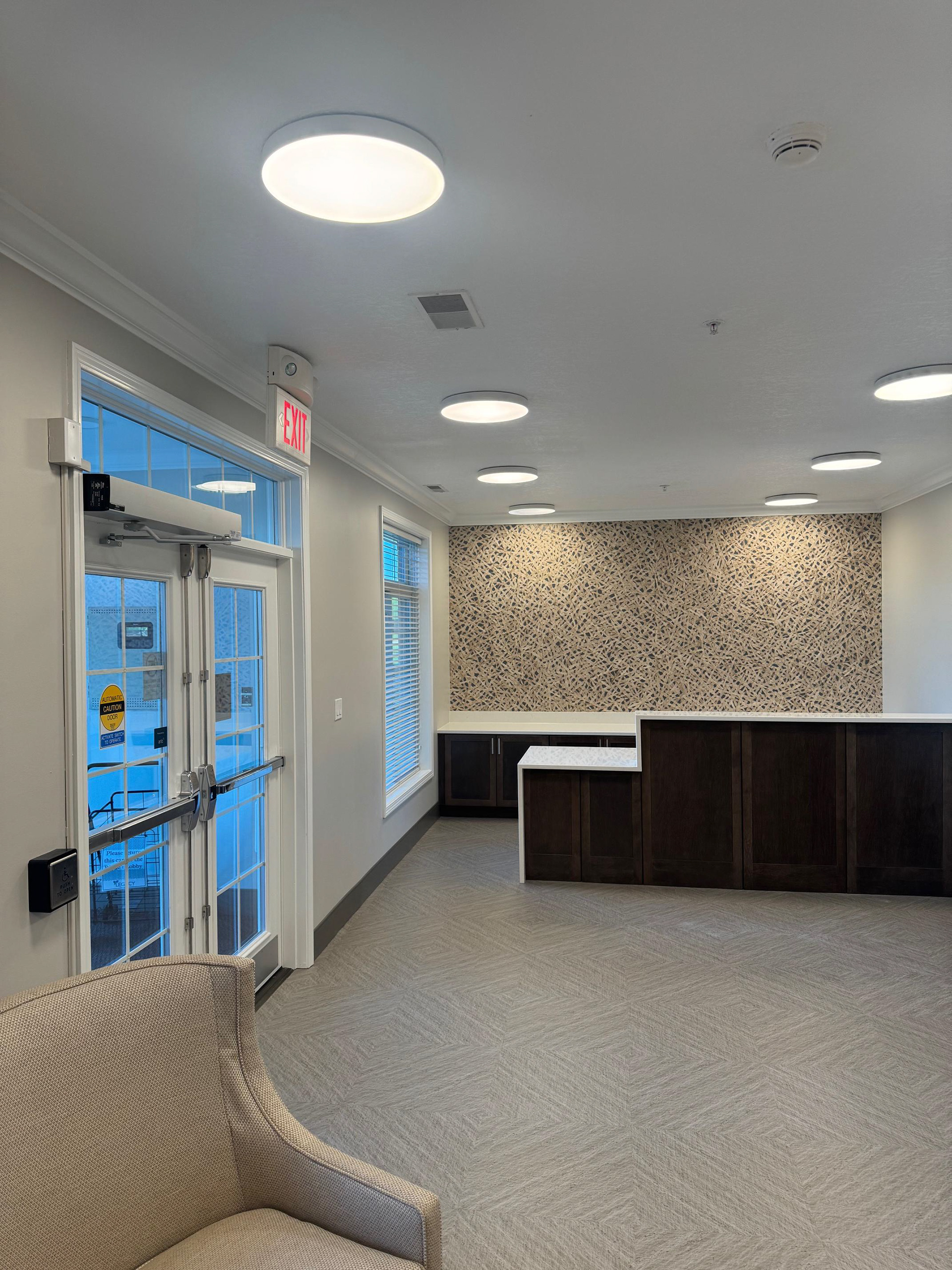Renovation to a senior living facility in Iowa City, Iowa. This project included the scope of refreshing common spaces such as 6 restrooms, community kitchen, library, lobby, and 2 large dining rooms and a theater. Many of the areas required demo of the materials including drywall, partition walls, revising MEP, removal of fixtures, cabinetry, and flooring.