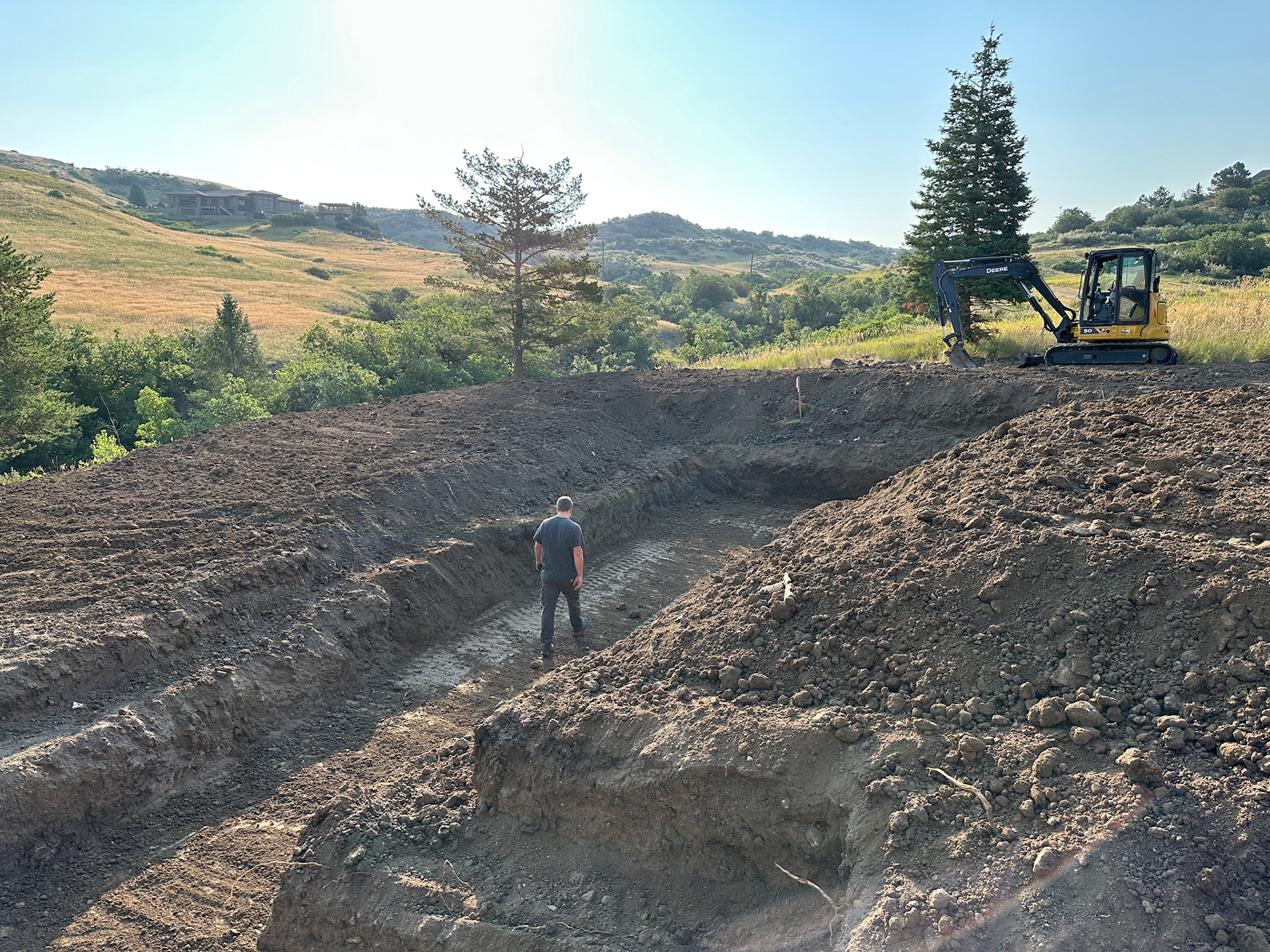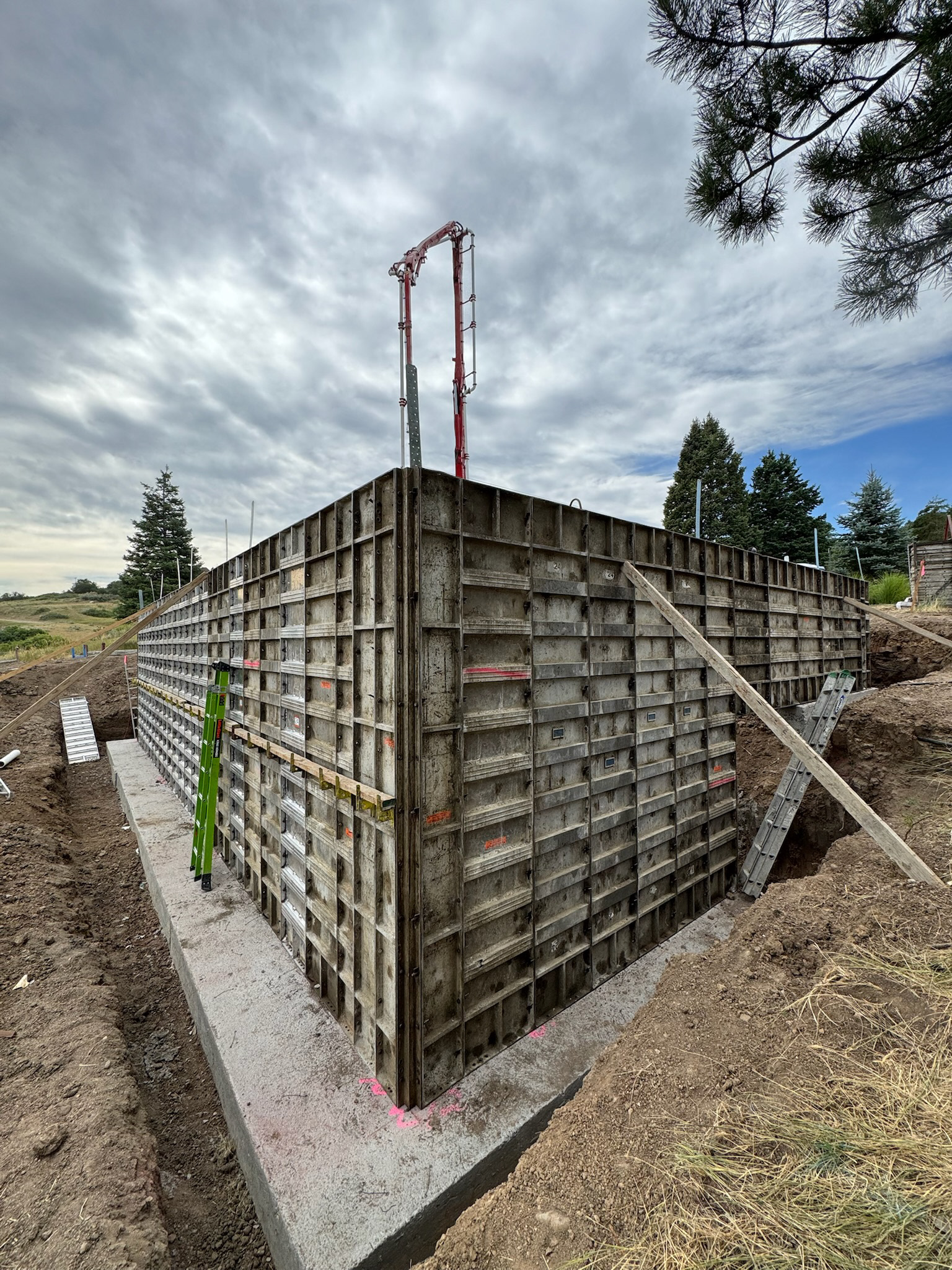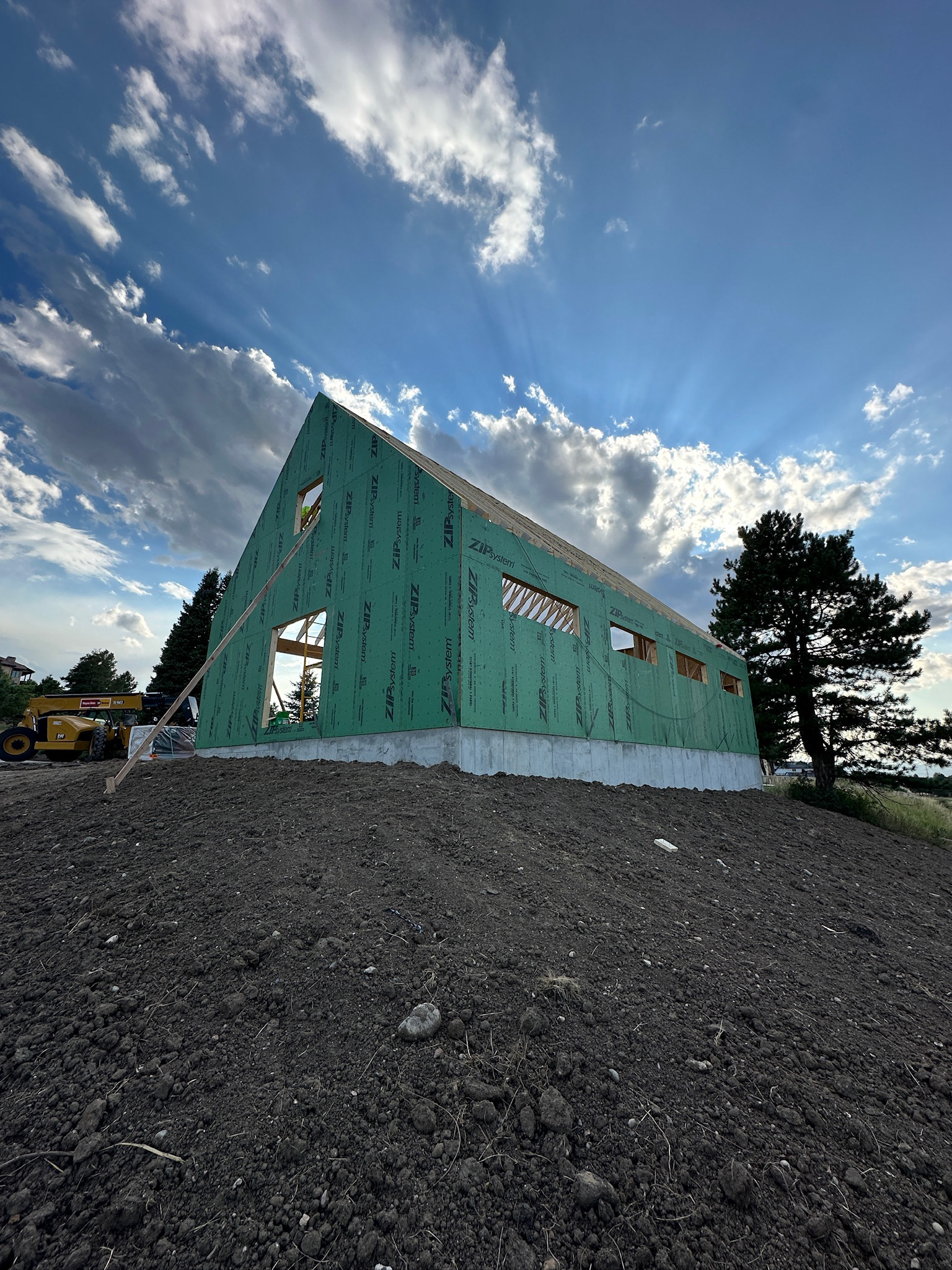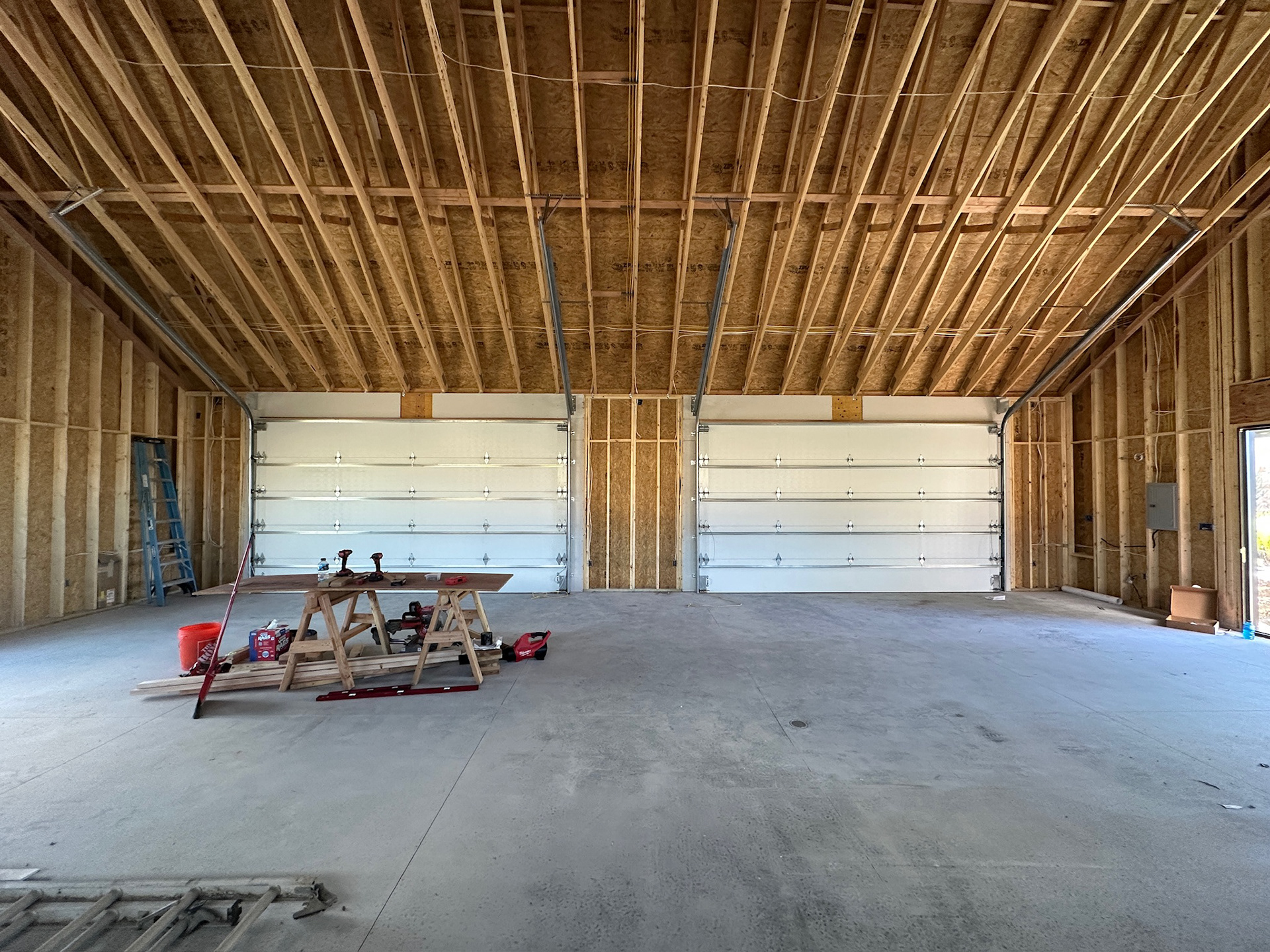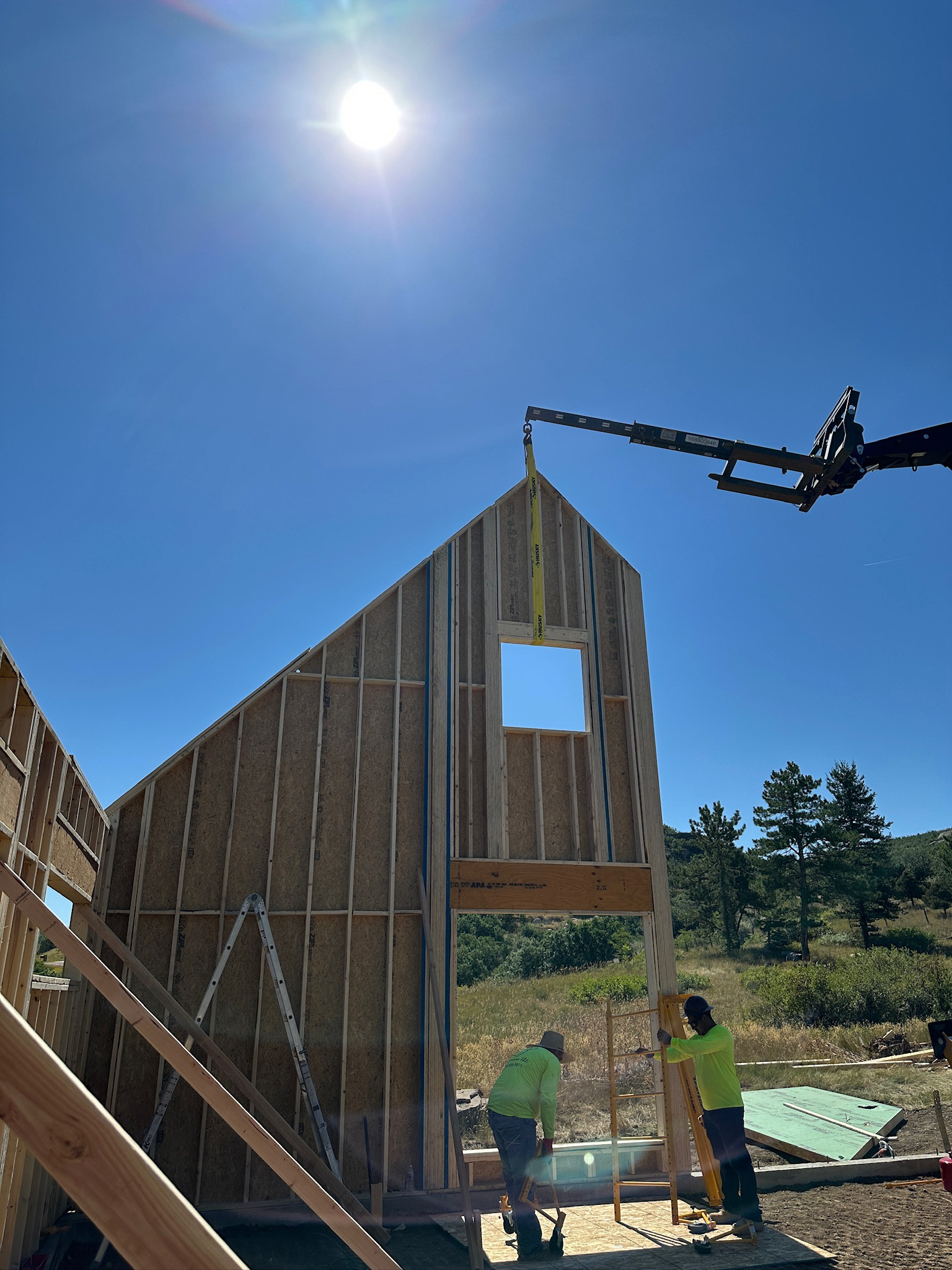 Custom design-build detached barn addition located in Lone Tree, Colorado. Several areas of the construction process was self-performed by WATERMEIER, such as the cedar barn doors fabrication and custom metal awnings and sliding door rail install. This project consists largely of sustainable material practices. The cladding is Resysta Siding, an open joint composite architectural wall cladding. Made from recyclable, wood-free composite material derived from rice husks. The material is made up of approximately 60% rice husks, 22% rock salt, and 18% mineral oil. This design formula offers superior resistance to water, insects, and decay. Another main material is the use of CVG Cedar. Clear vertical grain cedar was utilized for the garage door cladding, custom sliding barn doors we fabricated, and for the vaulted ceiling decking. The gable ends of the facade host large black powder coated awnings and barn door track systems that were designed by us, and submitted and fabricated by a local design build steel fabricator in Denver.